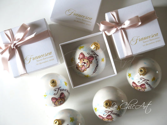 Set 10 Bomboniere Palla Albero di Natale 8,5 cm dipinta a mano - Orsetto Rosa/Azzurro