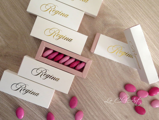 Set 20 Scatola porta confetti nascita Luxury con nome in oro lucido