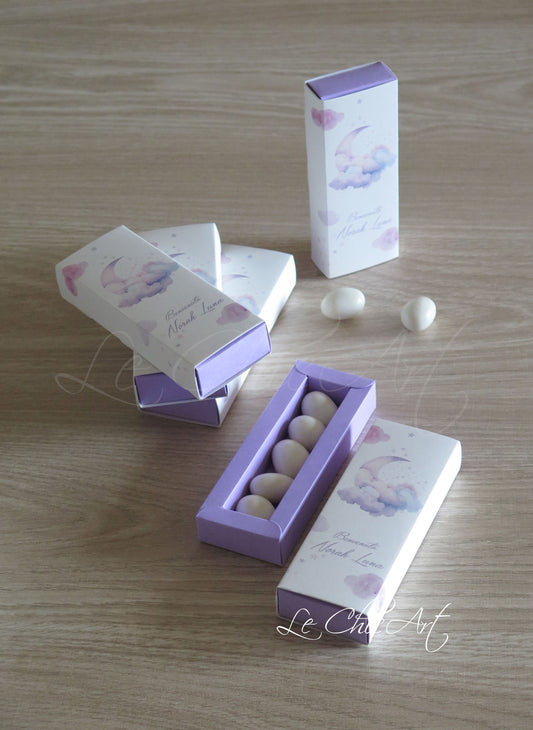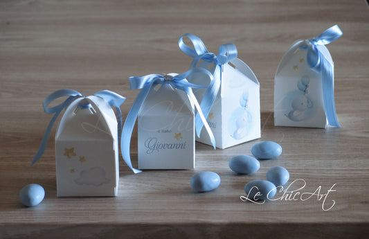 Set 20 Scatole porta confetti nascita a sfilo. Luna, Elefantina, Orsetto e palloncini