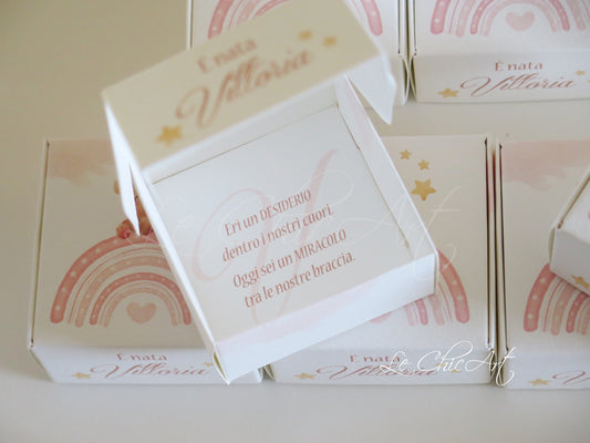 Benvenuti nella nostra selezione dedicata a rendere ancora più speciale il giorno dell'arrivo del vostro bambino o della vostra bambina! Qui troverete idee dolcissime e originali per ringraziare amici e parenti, offrendo un ricordo unico e personalizzato di questo momento di gioia.