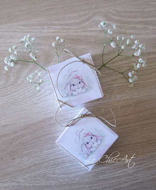 Set Scatola porta confetti cubo nascita cuore di mamma con orsetta e coniglietta
