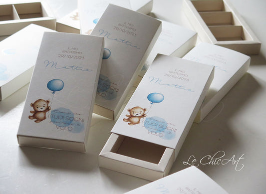 Set of 10 customizable graduation favor boxes with glossy gold print and 4 compartments - Made in Italy