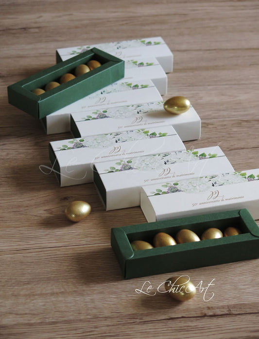 Welcome to our exclusive selection of favor boxes and gift boxes, designed to make every wedding anniversary unforgettable. Whether it's a silver or golden wedding anniversary, or any other milestone, here you'll find the perfect touch to thank your loved ones and share the joy of this milestone.