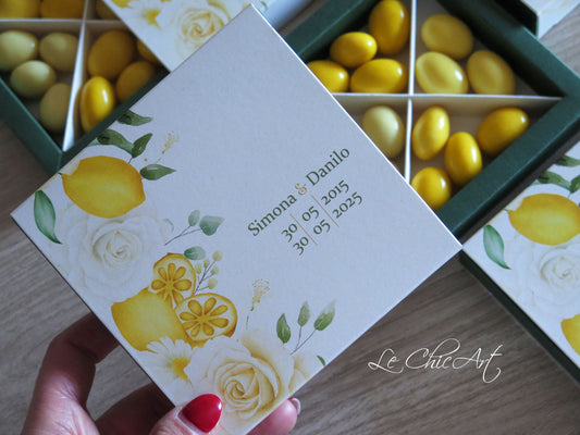 4 Compartment Tasting Box Set Tin Wedding 10th Anniversary Personalized Favor Roses and Lemons
