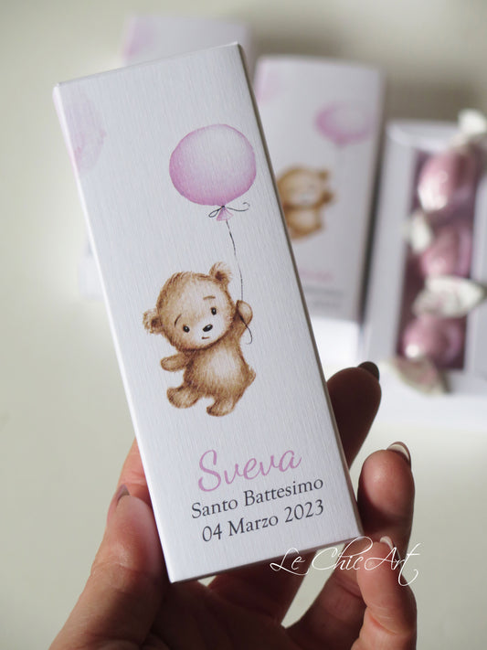 Set of 20 Confetti Boxes for Birth/Baptism, Teddy Bear with Balloon