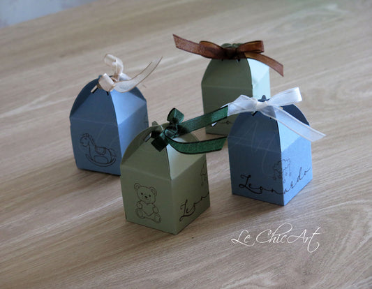 Set of 20 confetti boxes for wedding favors, elephant, teddy bear, and rainbow lanterns