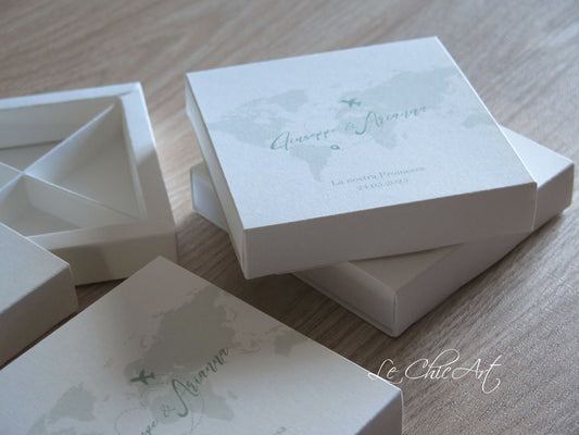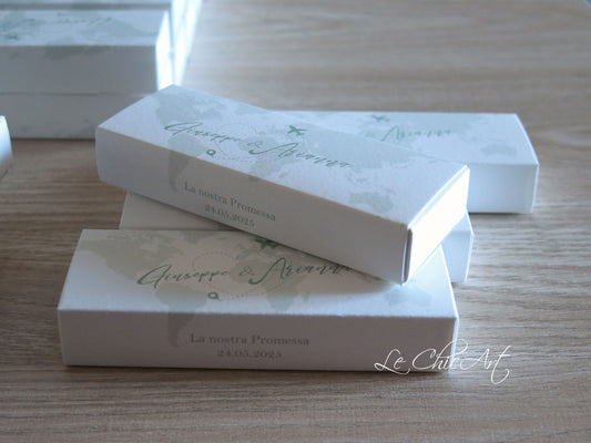 Set of 20 Sage Green Travel-Themed Wedding Favor Boxes