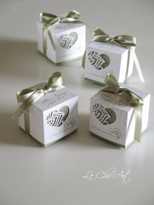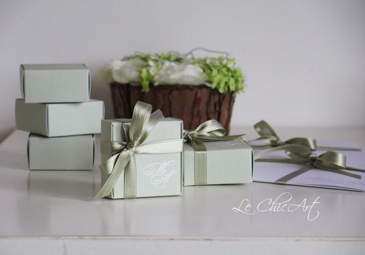 Set of 20 Sage Green Minimal Design Wedding Favor Boxes
