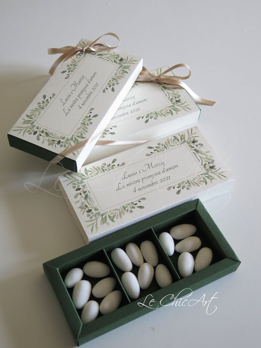 Set of 10 wedding favor boxes with 6 compartments and a personalized semi-transparent band