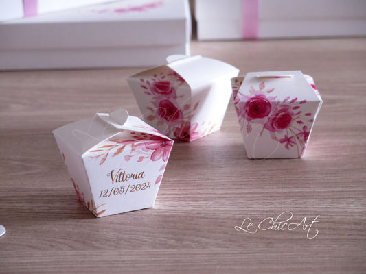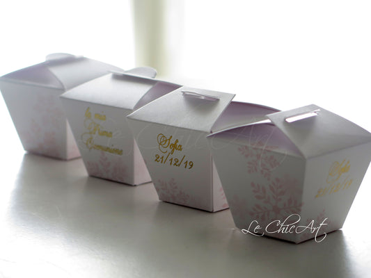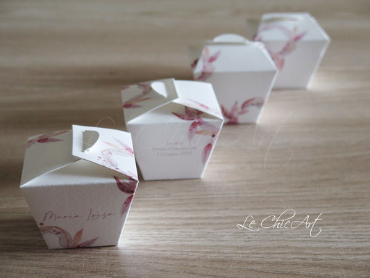 Set of 20 Communion confetti boxes with burgundy or eucalyptus flowers