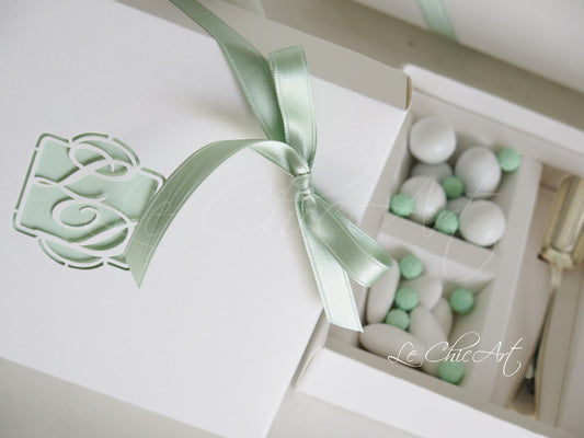 Here you'll find more than just boxes, but a universe of ideas and possibilities to perfectly dress up your wedding favor. Each project on display is the result of careful research and a profound passion for design and craftsmanship, designed to enhance the item they hold and leave a lasting impression on your guests.