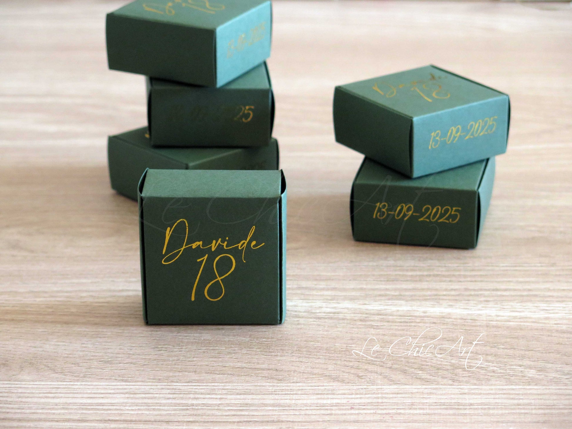 Set 20 Scatole porta confetti 18 Anni Luxury Rosso - Verde Bosco ed Oro Lucido